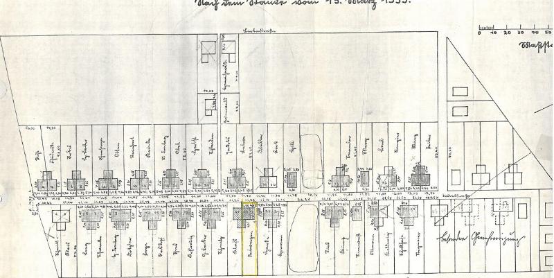 Quelle: Bauakte. FlächeInsgesamt sollten 35184,06m2 (14 Morgen und 184,06m2) bebaut werden.21.Mai 1957 wurde das Merkblatt „Verschluss gegen Kellerüberschwemmung“ verteilt. Merkblatt_fuer_Hausbesitzer_und_Mieter.pdf Das Wasser ablassen wurde verboten bei Rhein +32,45 R.N (Bedeutung unklar.) (ggf.: PNP Pegelnullpunkt über NN 24.48 m) http://www.elwis.de/gewaesserkunde/Wasserstaende/Wasserstaende_start.php.html?target=2&pegelId=2750010 Die Gemarken (sog. Flurstücke) sind immer Eller eingetragen, früher gehörte die Straße evtl. zu Neu-Eller. Quelle: alter Falk-Stadtplan leider nicht mehr auffindbar Falls den Plan jemand hat bitte mir ausleihen!) 1932 wurde die Bebauung geplant.