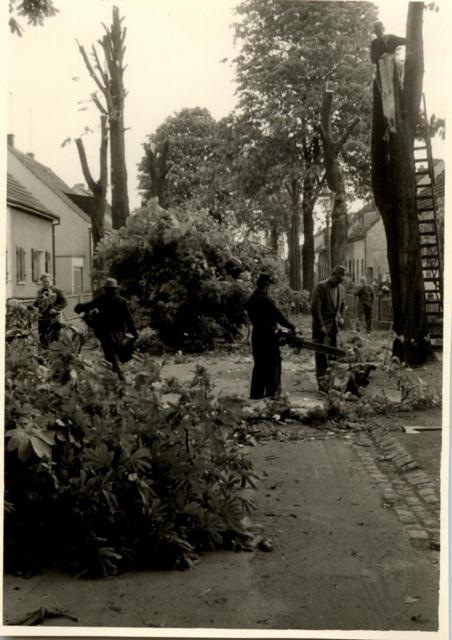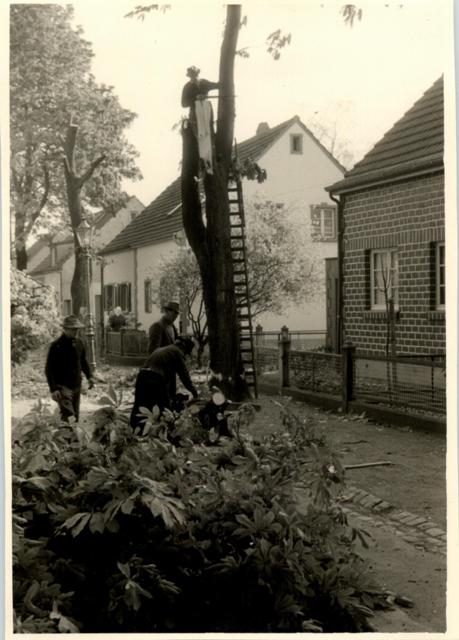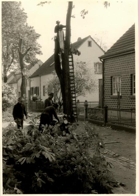 Nachbar KönigsbuschDer Königsbusch befindet sich "links" von der heutigen Sackgasse, genaue Beschreibung auf deren Seite.Königsbusch Es gab Ihn schon ca. 8 Jahre vor der Fröbelstraße. (seit 1924) Nachbar HippellandDas Hippelland befindet sich hinter den Grundstücken mit ungeraden Hausnummer, erstreckt sich vom Zamenhofweg bis zum Kleingartenverein Königsbusch. Die offizielle Zufahrt befindet sich vom Zamenhofweg. Ein weiterer Zugang ist über den Wedehammer der Fröbelstraße möglich.Von den Bewohner der Fröbelstraße und des Kleingartenvereins Königsbusch wurde diese Nutzung misstrauisch Das Kleingartenanlage Hippeland entstand ca. 2005 auf dem jahrelang als Pferdewiese benutze Fläche die von der Stadt und der Glashütte gepachtet wurde. Auf dem Gelände war ein Reit-Parcours angelegt mit Wasserbecken in dem die meiste Zeit Wasser stand und im Winter zum Schlittschuhe fahren einlud. Ein vom Pächter Herrn Schellhase Reitrundlauf mit Sand und Hügel dient als Spielplatz. Bilder BaumschlagCa. 1960 wurden die Kastanien? gefällt. Trotz der Bemühungen von Hr.Balwes? (stimmt das?)Zu dieser Zeit waren schon Gaslaternen installiert. Die Wurzeln der Bäume sind auch mit entfernt worden, das kann man auch sehen