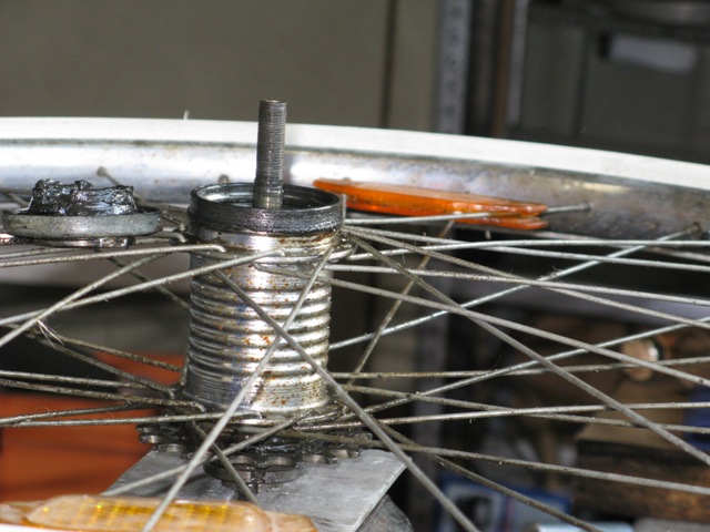 Das Tretlager hat auch ein wenig gelitten und zeigt Kerben, da ich dort aber keine Gnade kenne habe ich sie wieder montiert und die werden so lange laufen bis es garnicht mehr geht. Die Tretkurbelkeile waren so fest das sie nur mit roher Gewalt sich rausschlagen liessen, dies hatte zur Folge das ich diese ersetzten musste. Nicht einfacher als das, dachte ich. Jedoch gibt es die Keile in ca. 3 verschiedenen Ausführungen, die keiner der vier Fahrradläden hatte. Aber nach einem Gespräche mit einem Fahrradhändler habe ich mich entschlossen die Auflagefläche nicht durch Feilen wieder zu vergrößern wie notwendig, sondern sie abzufräsen. Ich hatte ca. 2004 eine kleine Fräse mit Drehbank geschenkt bekommen, nun konnte ich sie endlich einsetzten. Es klappte prima und alles läuft wieder.